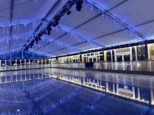 A key new feature of this season’s venue was the purpose-built marquee, designed to enhance both comfort and visual impact. The ice rink was housed within a 15-metre wide clearspan marquee with a curved roof, giving the space an open, airy feel while comfortably accommodating the rink, lighting and guest areas.